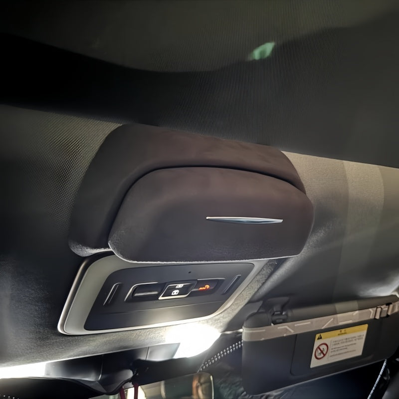 Crafted for luxury and protection, the interior is lined with high-quality Alcantara suede material. This soft, non-abrasive surface prevents scratches and securely cushions your sunglasses or eyeglasses. It’s the ultimate blend of functionality, premium aesthetics, and practical design for your daily drive.