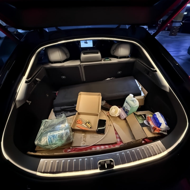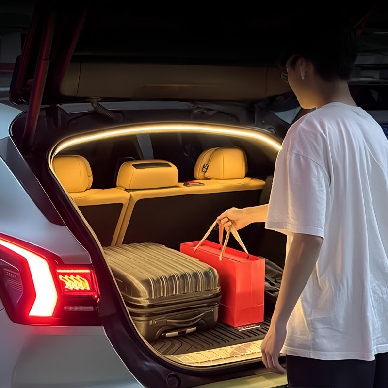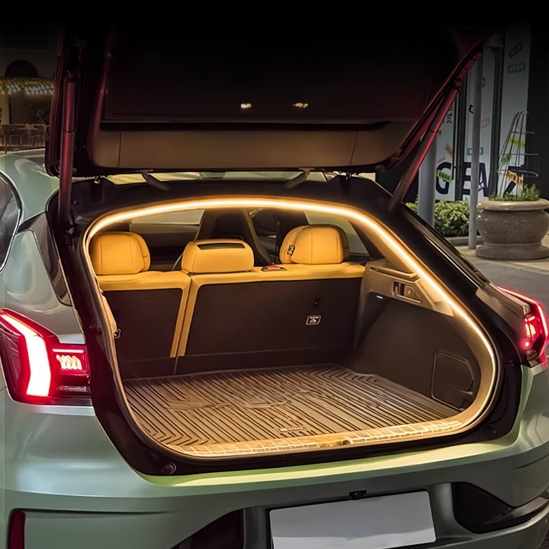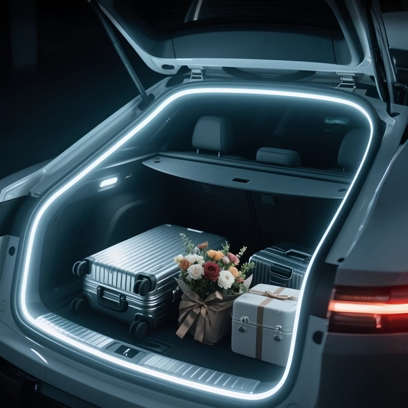 Upgrade your ZEEKR 001, 009, X, or 7X with our high-brightness LED trunk light strip, designed for seamless integration and superior convenience. Say goodbye to a dark trunk and effortlessly find your belongings day or night. This innovative lighting solution features a flexible silicone outer tube and ultra-bright LED beads, casting a wide, even glow throughout your trunk space.